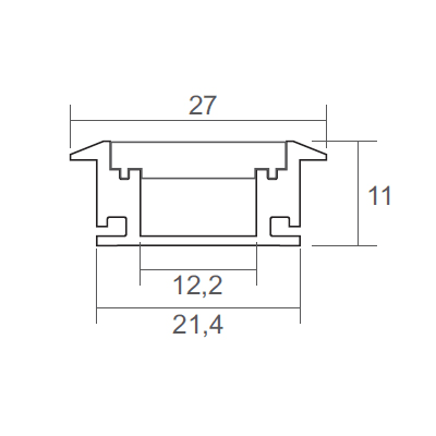 Proline 2711 - Profilo in estrusione di alluminio per l'installazione ad incasso in muratura. Disponibile nelle finiture di colore alluminio anodizzato. Il diffusore in policarbonato è a filo bordo (non retratto). Cablato a richiesta con strip LED disponibili nella versione IP20 o IP65 inserita all'interno del profilo . L'alimentatore deve essere posizionato in remoto rispetto al Proline LED. Copertura Opale. Kit composto da: profilo + diffusore + tappi. L2000 mm.
