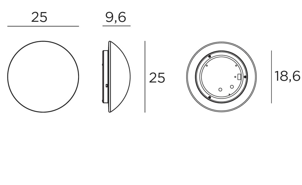 Plafoniera in vetro bianco opale acidato con aggancio a baionetta per montaggio a parete e soffitto. Montatura rotonda in metallo verniciato bianco. Sorgente Luminosa: A60 E27 max60W/TC-HSE max 23W 1550Lm 2700K.
