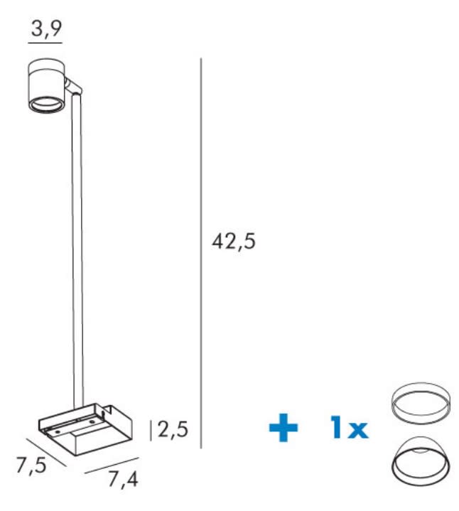 Proiettore a base con 1 spot LED orientabili. Corpo in pressofusione di alluminio verniciato grigio cemento. Ogni spot deveessere completato con la relativa ottica disponibile in vari fasci e comprensiva di anello colorato. Orientabilità dei gruppi ottici di +/- 100° sul piano verticale e di 350° su quello orizzontale. Spot singolo disponibile anche in versione con asta lunga per garantire la massima flessibilità applicativa. Sorgente Luminosa: LED 9W 1200Lm 3000K. Peso Apparecchio: 0.3140 kg.