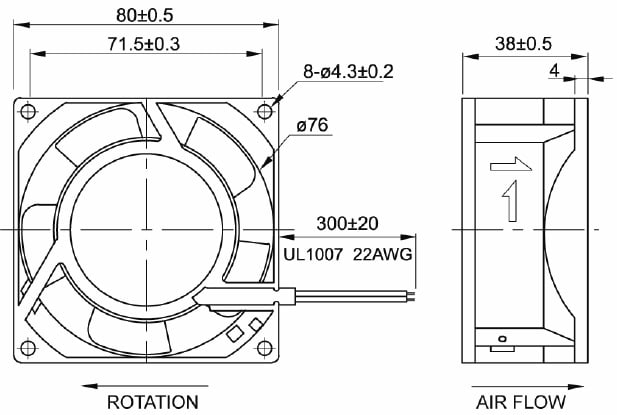 Ventilatore assiale in corrente alternate per motori a poli schermati, alta velocità, con connessione a filo. Supporto a bronzina