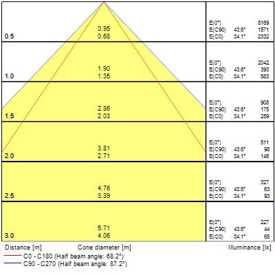 Flusso luminoso calcolato secondo la norma IEC 62722-2-1: