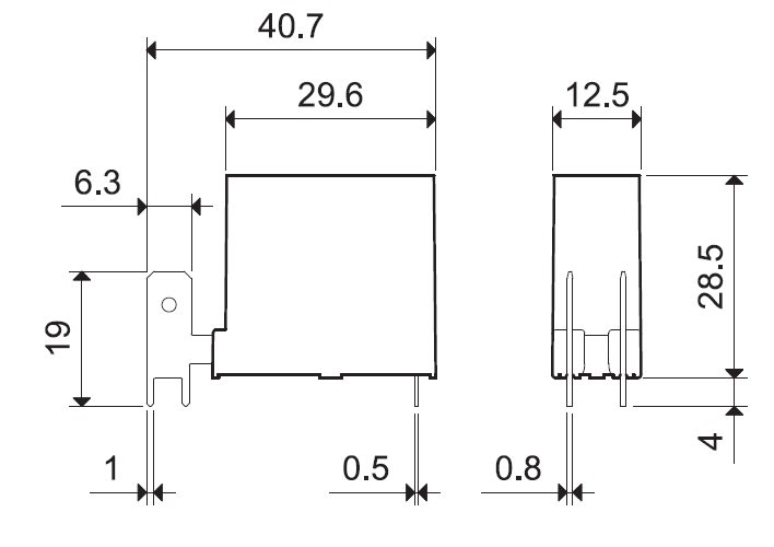Mini relè. (A): 16 A. N°contatti: 1 Configurazione contatti: NO Materiale contatti: AgCdO Collegamento elettrico: connessione a linguetta saldata FASTON 250. Alimentazione: DC Volt DC: 12 V. non polarizzato monostabile Categoria di protezione: RT II.