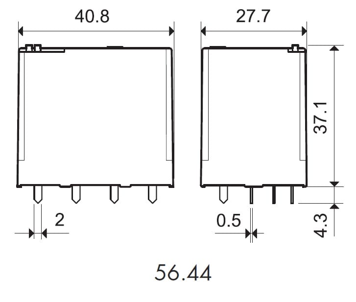 Relè di potenza. (A): 12 A. N°contatti: 4 Configurazione contatti: CO Materiale contatti: AgNi Collegamento elettrico: collegamento circuito stampato Alimentazione: DC Volt DC: 48 V. non polarizzato monostabile Categoria di protezione: RT I.