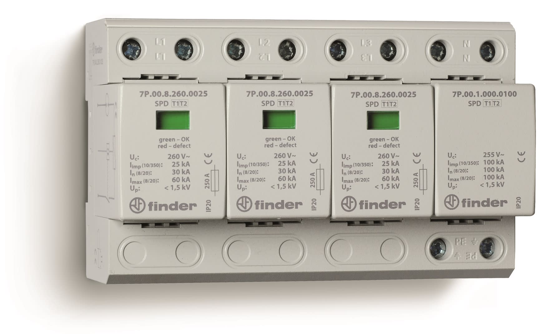 FINDER S.P.A. - FIN7P0482601025 SPD CLASSE1+2 TRIFASE 4P 260VAC 3+1 25KA - 7P0482601025