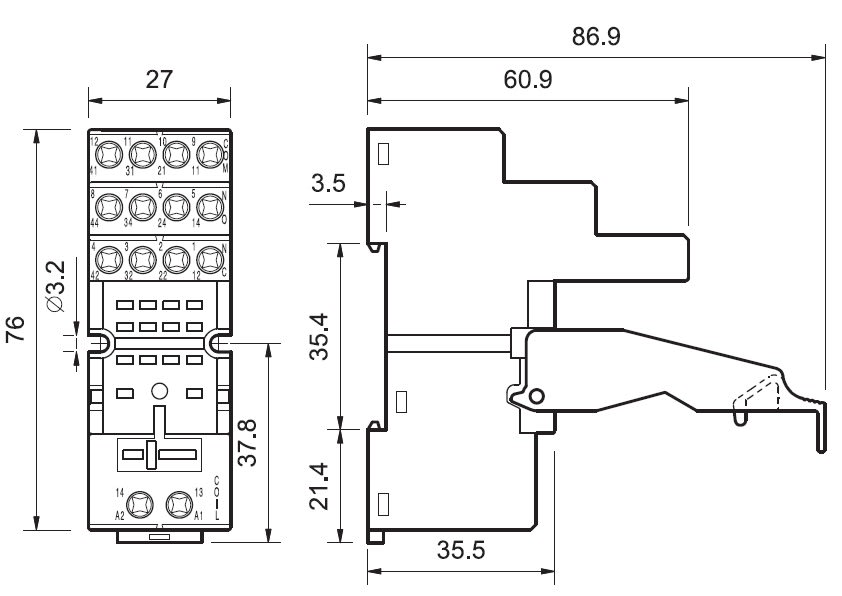 FINDER S.P.A. - FIN9404SPA ZOCCOLO CON MORSETTI A BUSSOLA 4P S.55/8 - 9404SPA