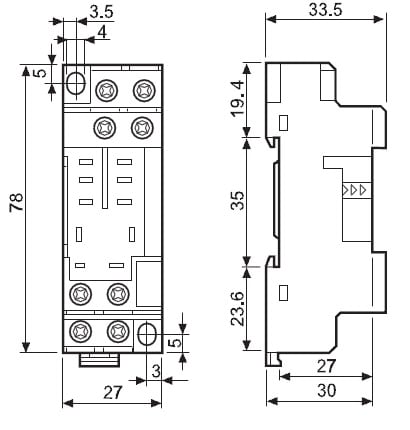 Zoccolo con morsetti a piastrina Montaggio: barra cieca 35 mm (A): 12 Grado di protezione: IP 20 Accessori: Ponticello metallico;moduli di segnalazione e protezione EMC