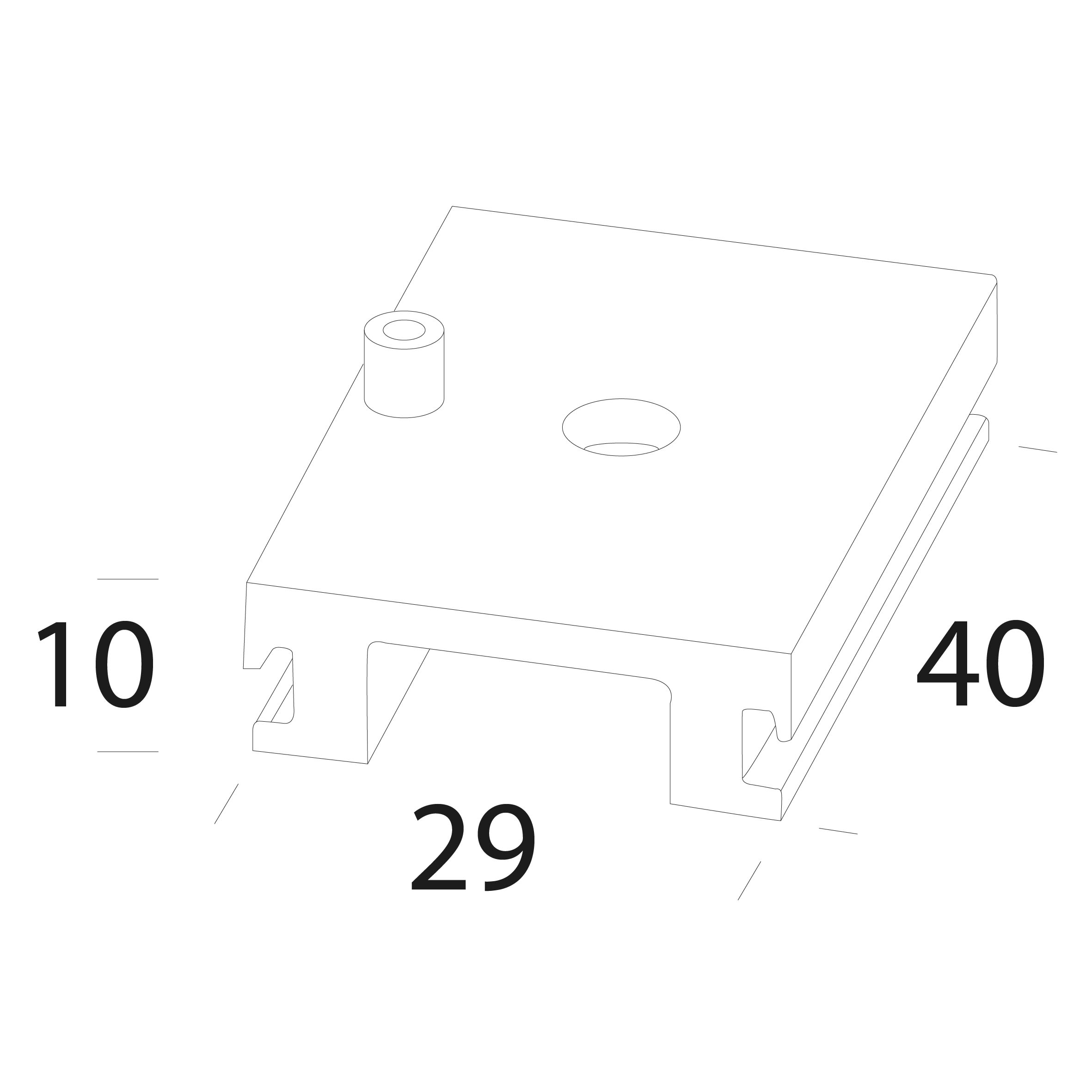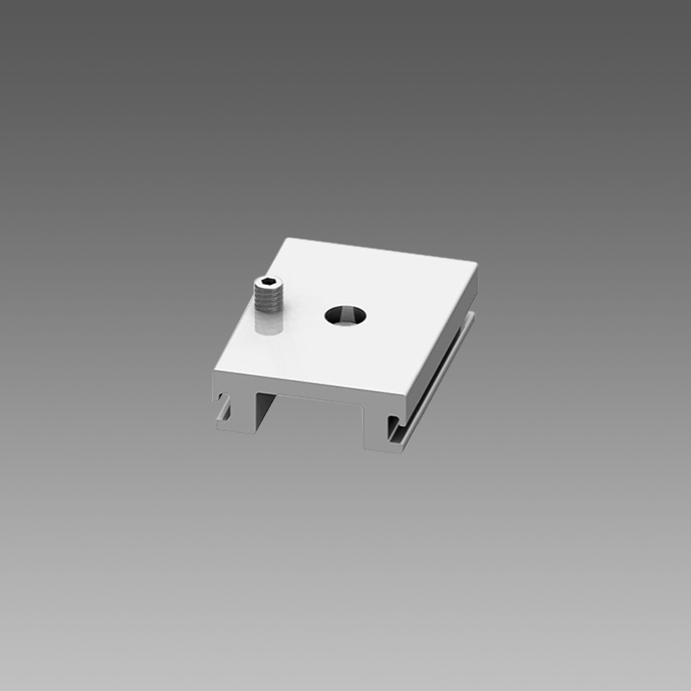 Staffa per sospensione - Consente l’installazione a sospensione del binario. Possibilità di scorrimento lungo l’asse longitudinale del binario. Alluminio.