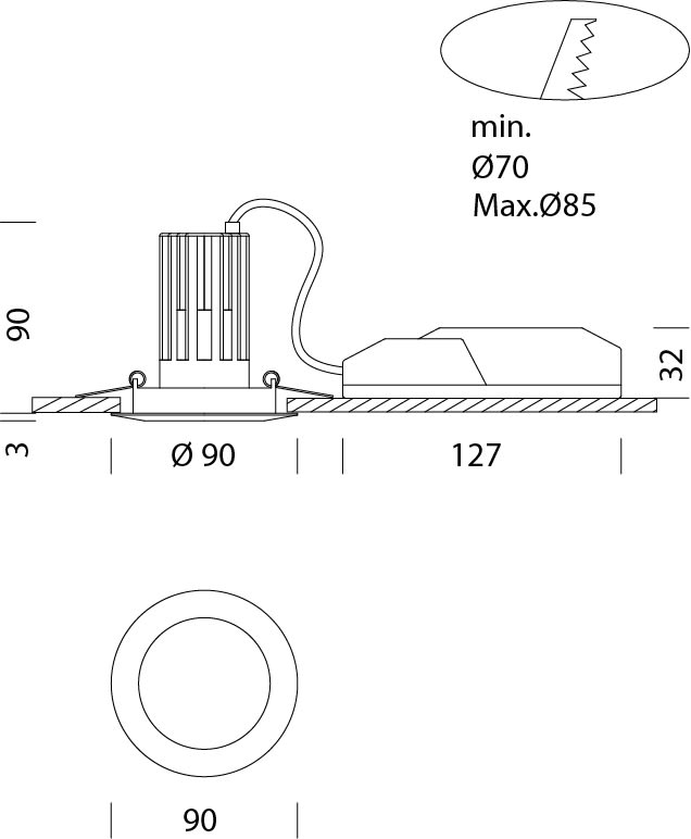Diametro incorporato - 70...85 mm