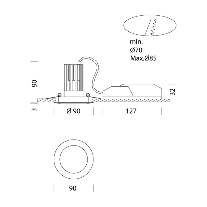 Dimmerabile tramite potenziometro (integrato nell'apparecchio):