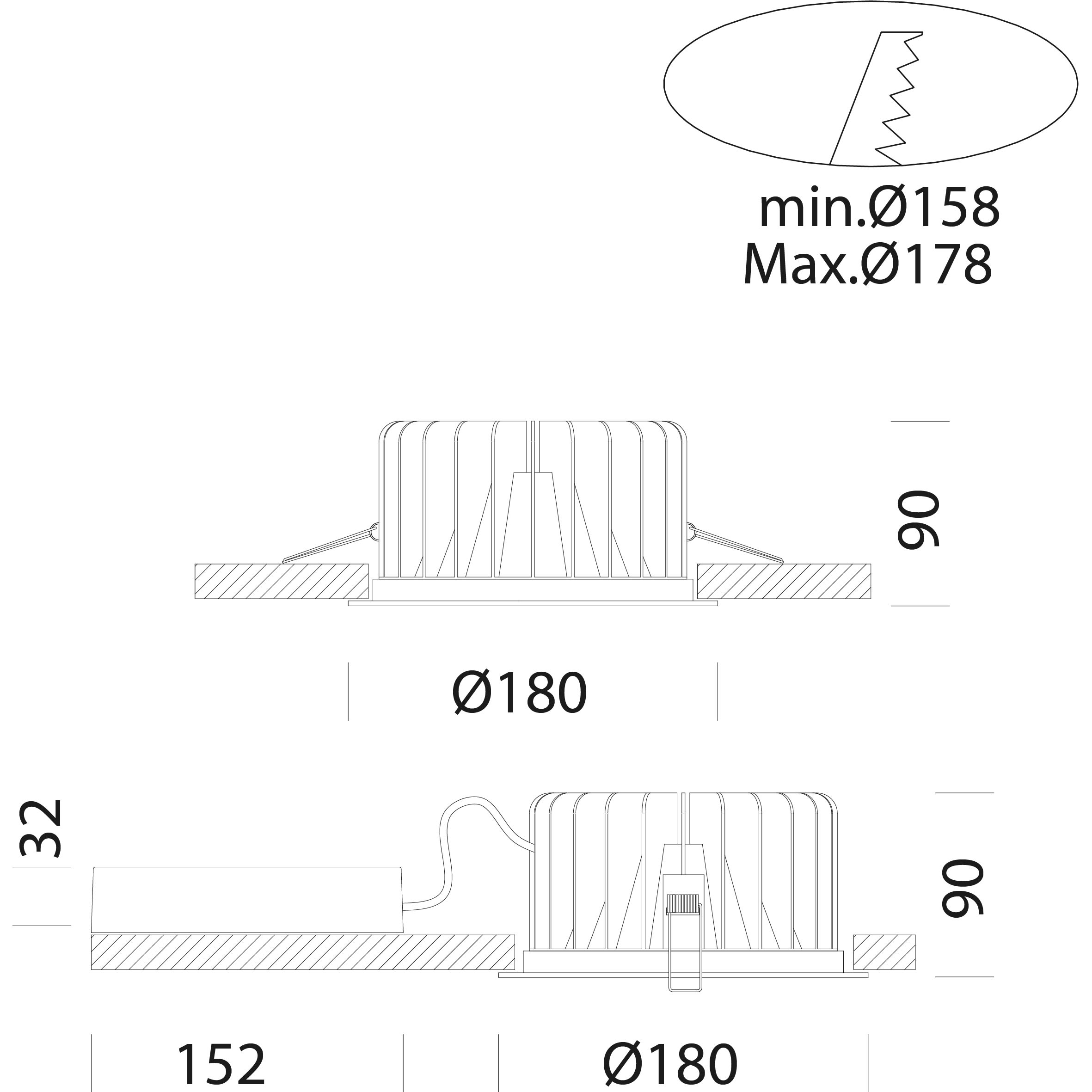 Diametro incorporato - 158...178 mm
