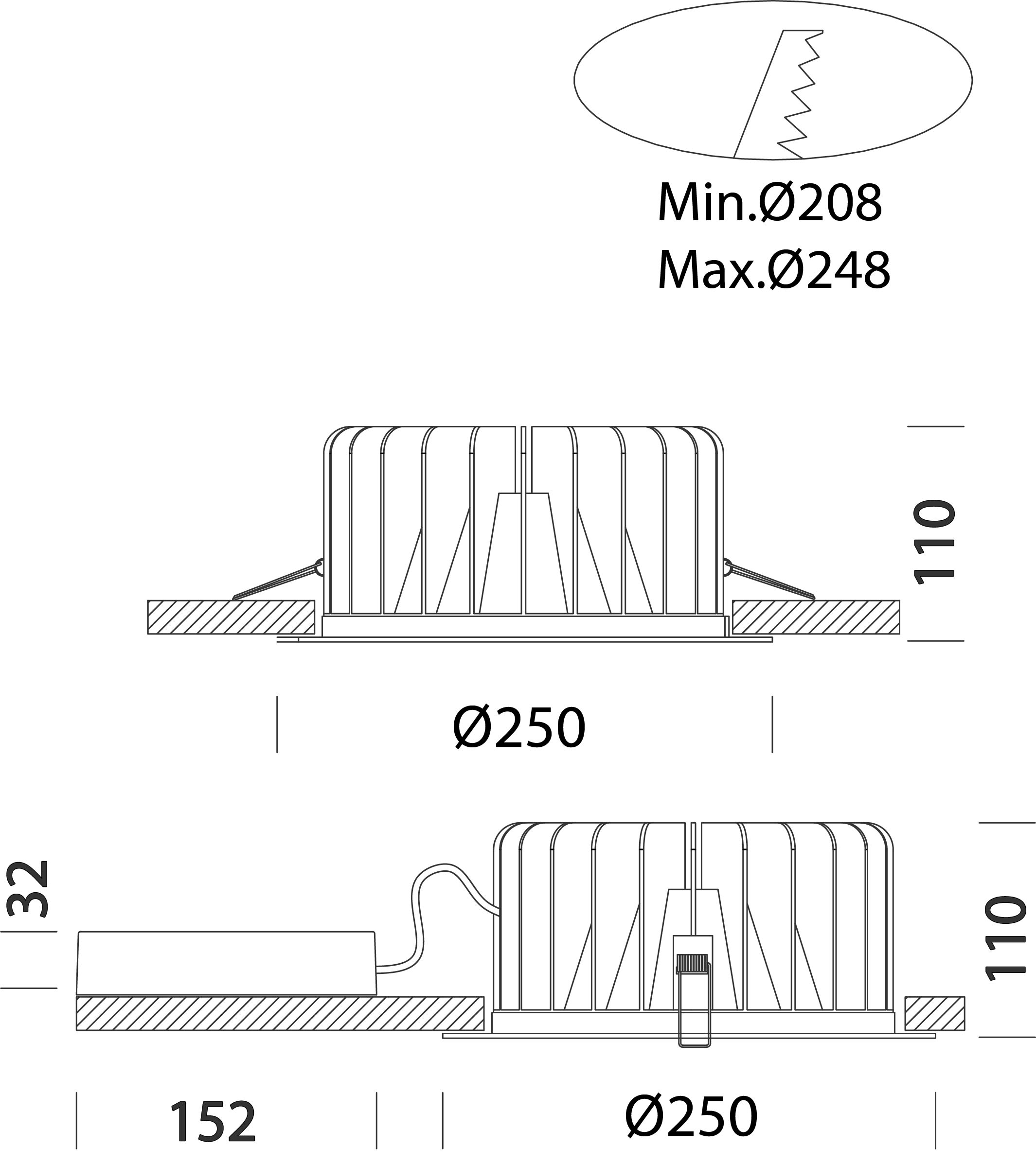 Diametro incorporato - 208...245 mm