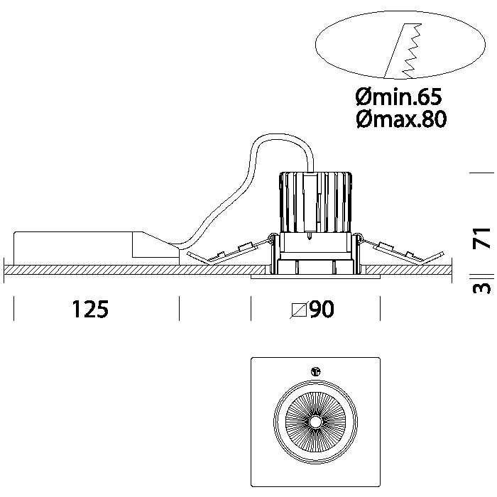 IC (Idoneo al montaggio su soffiti isolati):