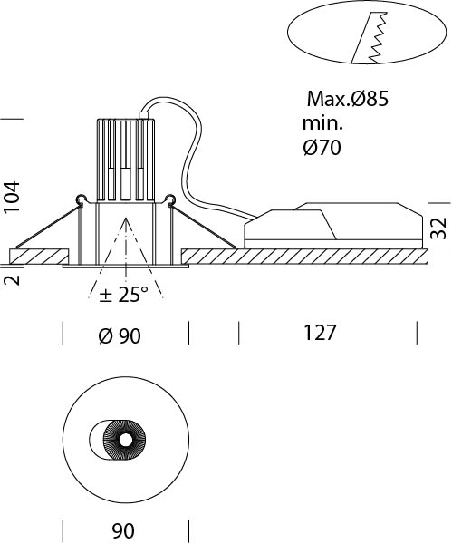 Diametro incorporato - 70...85 mm