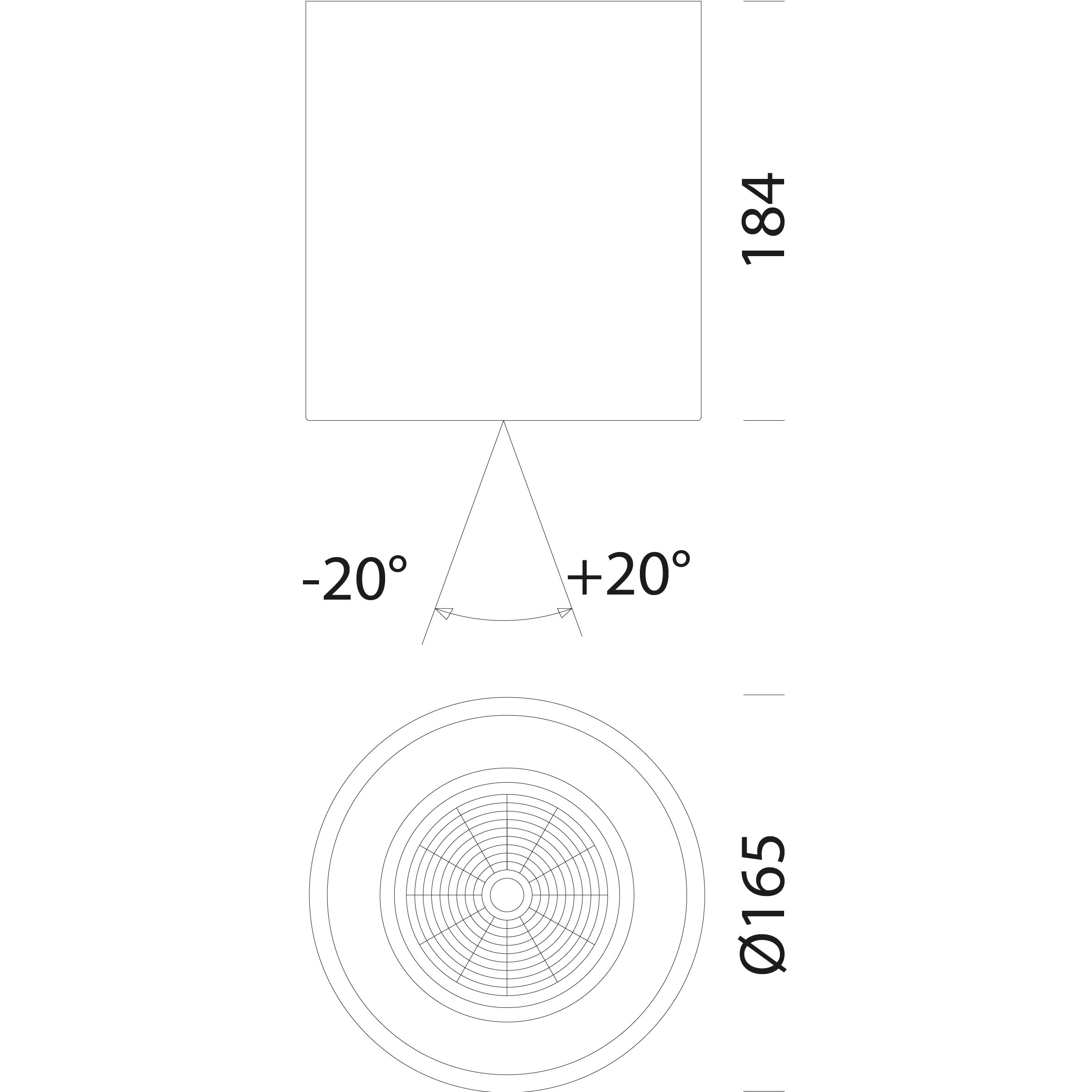 Themis R165 - orientabile con ottica. Themis si caratterizza per la sua forma semplice e per l’alta qualità della resa luminosa grazie a LED di ultima generazione. Studiato per l’illuminazione diretta è dotato di riflettore ad alto rendimento (versione orientabile), oppure di lente in grado di sottolineare maggiormente il fascio luminoso. Progettato per essere facilmente installato a plafone grazie alla staffa in dotazione, è in grado di far risaltare vuoti e pieni, evidenziare con cura i dettagli architettonici, e di dare ritmo e colore alle superfici in interni di prestigio Corpo: In alluminio pressofuso con schermo frontale in policarbonato trasparente. Equipaggiamento: completo di staffa per l’installazione direttamente a plafone. Riflettore: In policarbonato metallizzato ad alto rendimento. LED: Mantenimento del flusso luminoso al 80%: 50.000h (L80B20). Fattore di potenza: >0,9 Classificazione rischio fotobiologico: gruppo esente. LED COB 33W 2515lm 3000K -38° - CRI>90. Bianco.