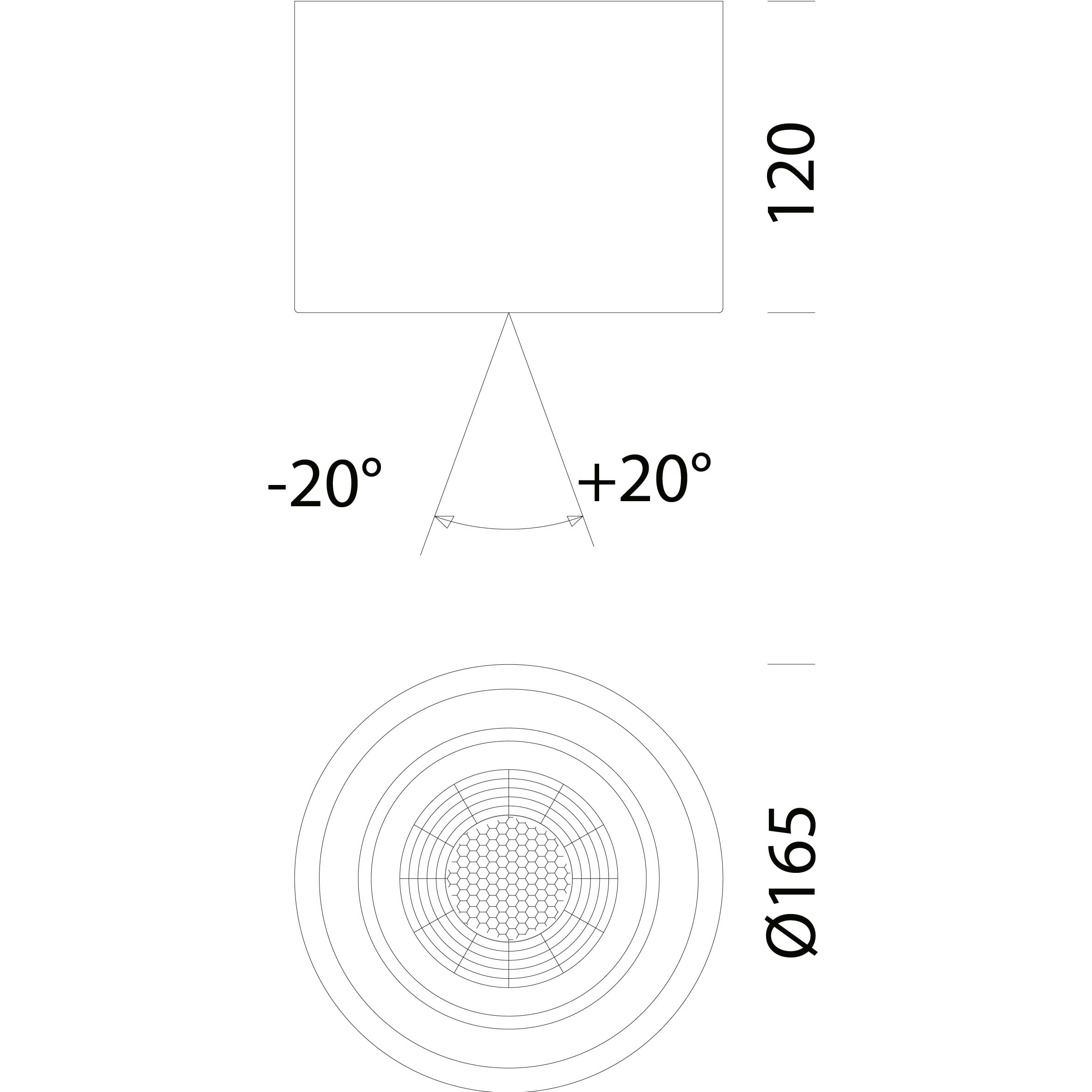 Themis L165 - orientabile con lente. Corpo: In alluminio pressofuso con schermo frontale in policarbonato trasparente, completo di cavo e rosone. Lente: sfaccettata ad alta efficienza con bassissimo coefficiente di abbagliamento. LED COB 22W - 3000K - 1950lm - CRI 85 - 24°. Fattore di potenza: =0,9. Mantenimento del flusso luminoso al 70%: 50.000h (L70B50). Colore: Grigio.