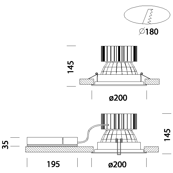 D (per montaggio in impianti industriali con pericolo di incendio per polvere o fibre EN 60598-2-24):