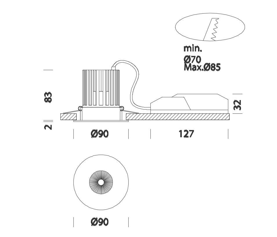 Dimmerabile tramite potenziometro (integrato nell'apparecchio):