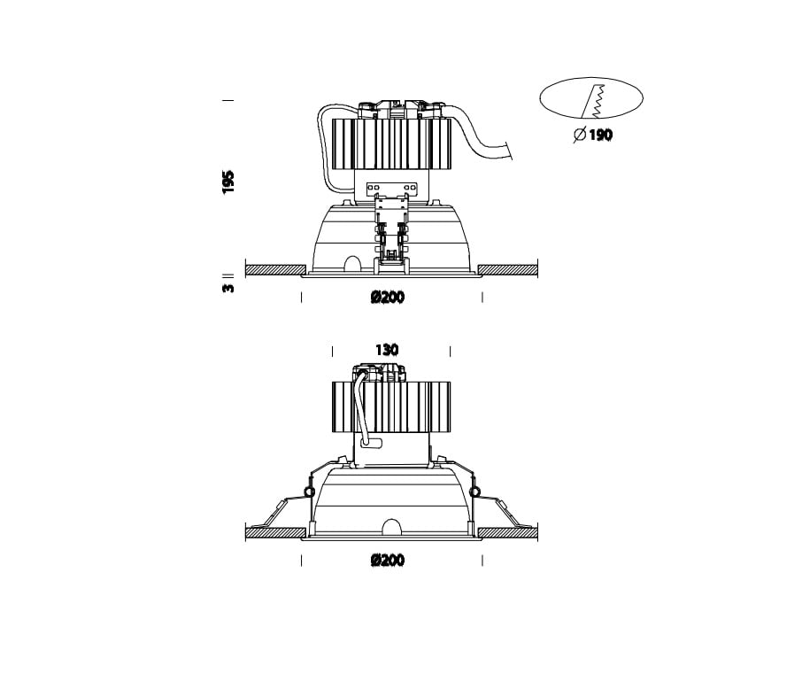 D (per montaggio in impianti industriali con pericolo di incendio per polvere o fibre EN 60598-2-24):