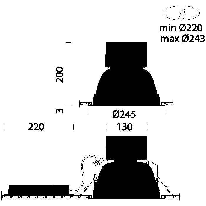 D (per montaggio in impianti industriali con pericolo di incendio per polvere o fibre EN 60598-2-24):