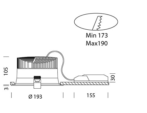 Studio 193 - Corpo: faretto fisso in alluminio pressofuso con molle per incasso. Normativa: Prodotto in conformità alle vigenti norme EN60598-1 CEI 34-21. Hanno grado di protezione secondo le norme EN 60529. LED: ad alta efficienza, LED COB 32W 3000lm - 4000K - CRI82. Mantenimento del flusso luminoso al 70%: 50.000h (L70B50). Fattore di potenza: >0,9. Classificazione rischio fotobiologico: Gruppo di rischio esente. Colore: Bianco.