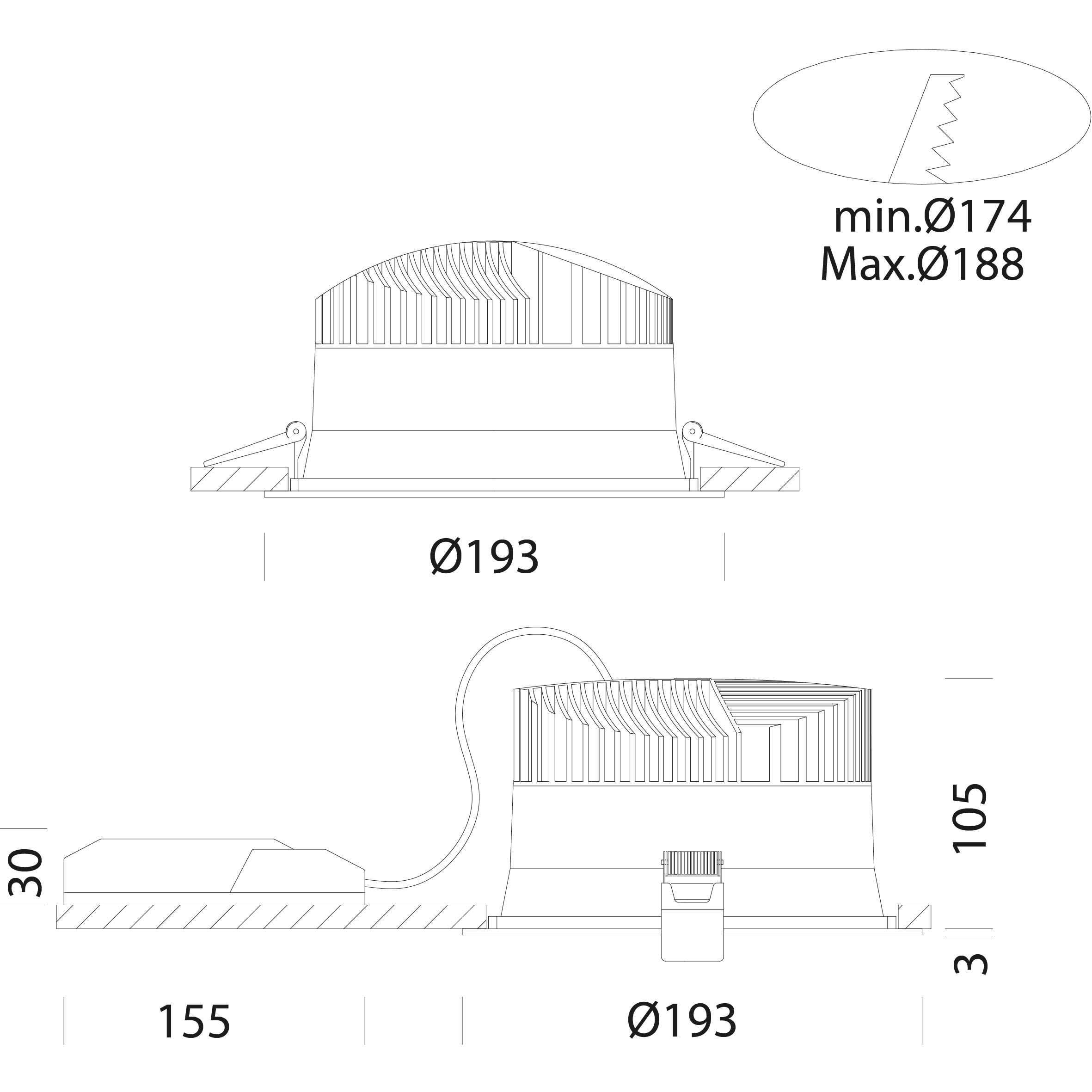 Diametro incorporato - 174...188 mm