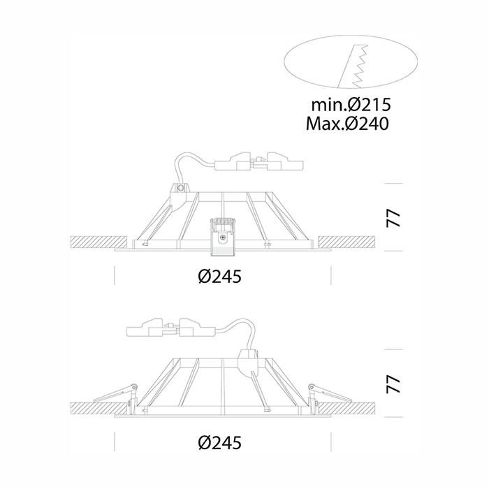 D (per montaggio in impianti industriali con pericolo di incendio per polvere o fibre EN 60598-2-24):