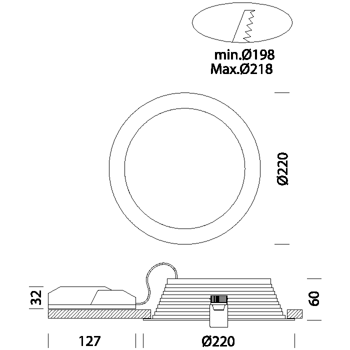 D (per montaggio in impianti industriali con pericolo di incendio per polvere o fibre EN 60598-2-24):