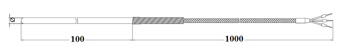 termoresist. materie plastiche: Mod.: TR1 (singolo elemento) modello: senza raccordo elemento + numero fili:Singolo 2 fili classe precisione:Pt100 classe A (1/2 DIN) Cavo (Standard a norma DIN):PVC (0,25 mm) Materiale guaina: Acciaio Inox Diametro guaina(mm): 6 estremità guaina: Forata lunghezza cavo (dm):10 dm tipo di connettore:nessun connettore armatura:nessuna guaina lunghezza immersione Li (mm): 100 mm certificati: nessuno