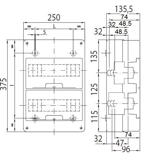 GEWISS - GEWGW40007 CENTRALINO - PARETI CON CENTRINI DI FORATURA - PREDISPOSTO PER ALLOGGIAMENTO MORSETTIERE - (12X2) 24M IP55 - GW40007