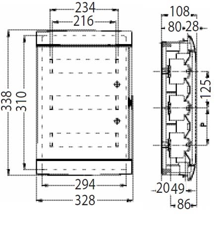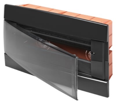 Centralini da arredo predisposti per alloggiamento morsettiere, con in dotatazione profili coprimoduli da 6,5M coordinati nel colore del frontale del centralino (per centralini da 4, 8 e 12 moduli n. 1 profilo, centralini da 24 moduli n. 2 profili, centralini da 36 moduli n. 3 profili) etichette utenze,elemento paramalta in cartone fornito di serie nell’imballo e confezionato con reggia in carta. potenza dissipabile determinata secondo CEI 23-49. Profili coprimoduli frazionabili fino a 1/2 modulo tramite forbici. Elemento paramalta con montaggio a pressione sulla bocca di apertura del fondo. Termopressione con biglia pari a 70°C. IP40 anche a porta aperta garantito mediante installazione incassata nel muro, utilizzando apparecchi almeno IP40 ed i profili coprimoduli in dotazione.
