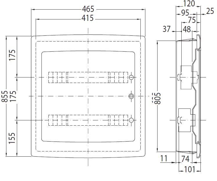 Quadro di distribuzione con pannelli finestrati e telaio estraibile predisposti per alloggiamento morsettire. Dotazione: mascherine coprimoduli, etichette utenze. Targhetta autoadesiva da compilare per la certificazione secondo la norma CEI 23-51.