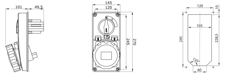 GEWISS - GEWGW66354N PRESA FISSA INTERBLOCCATA VERTICALE - SENZA FONDO - CON BASE PORTAFUSIBILI - 3P+T 63A 480-500V - 50/60HZ 7H - IP67 - GW66354N