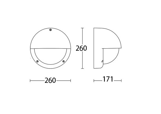 Kasko Tonda con palpebra - Antivandalo. Palpebra e base in alluminio pressofuso. Coppa in policarbonato opale stabilizzata UV. Viti inox testa a brugola. Riflettore precablato in alluminio 99,8 brillantato. Verniciatura a polvere poliestere dopo fosfocromatazione stabilizzata raggi UV. Portalampada situato nella parte alta. Ingresso dal retro o laterale. Colore: bianco. Lampada: E 27 Dulux El L max 145mm 1X75W/20W.