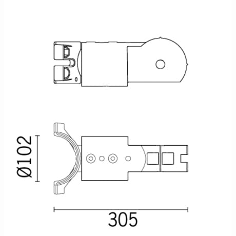 Realizzato in acciaio zincatura a caldo e sottoposto a fosfocromatazione, doppia mano di fondo, passivazione a 120° C, verniciatura liquida grigia testurizzata RAL 9007, cottura a 150° C. Idone per pali con diametro ø102mm. Tramite utilizzo accessorio 6163 anche su pali ø89mm.