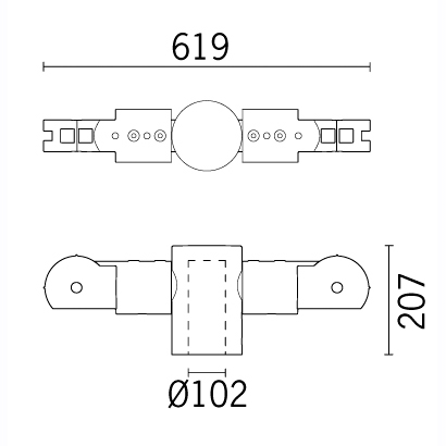 Testapalo doppio ø102mm realizzato in acciaio zincatura a caldo e sottoposto a fosfocromatazione, doppia mano di fondo, passivazione a 120° C, verniciatura liquida grigia testurizzata RAL 9007, cottura a 150° C. Fissaggio al palo tramite 2 grani M8 antiallentamento.