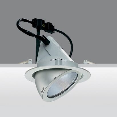 Apparecchio ad incasso costruito in pressofusione di alluminio con riflettore in alluminio superpuro incorporato. Asta porta-morsettiera ancorata al corpo dell'apparecchio. Doppia orientabilità, frizionamento continuo senza blocchi meccanici, che facilita il posizionamento desiderato. Scatola porta componenti in estrusione di alluminio separata dall'apparecchio.
