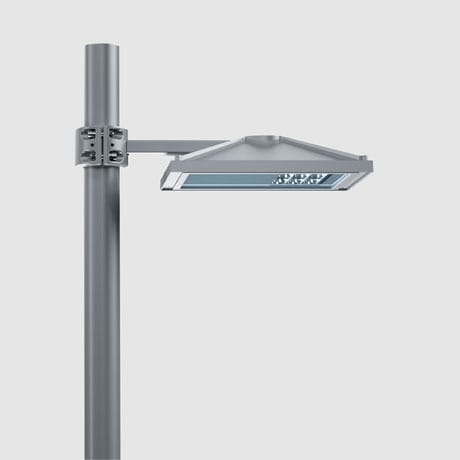 Tubolare in acciaio zincato a caldo e sottoposto a fosfocromatazione, doppia mano di fondo, passivazione a 120° C, verniciatura liquida grigia testurizzata RAL 9007, cottura a 150° C. Idone per pali con diametro ø76mm. Tramite utilizzo accessorio 6163 anche su pali cilindrici ø89mm.