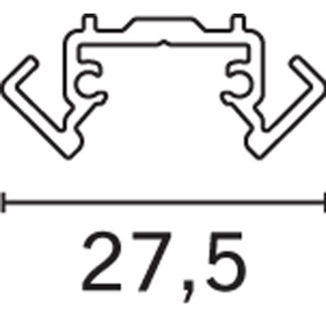 Profilo rigido in alluminio per installazione angolare (inclinazione 45°); la conformazione del profilo consente l’applicazione di tutte le Ledstrip monocromatiche con LED ad emissione frontale, disponibili nelle versioni standard (con adesivo) o tube (con guaina esterna). Finiture disponibili: grigio anodizzato. Il profilo può essere completato con uno schermo diffusore disponibile in due finiture: opale e traslucido. Specifica per applicazioni angolari; fissaggio diretto con viti (non incluse); il profilo è dotato di invito longitudinale per facilitare la foratura. Per installazioni poco agevoli è disponibile un kit di clips accessorie (cod. MXM5 x 5 pcs); fissaggio preventivo delle clips con viti, successivo ancoraggio del profilo sulle clips predisposte (viti non incluse). Testate di chiusura accessorie (cod. MXL4 - kit 10 pcs). Dimensioni (mm): 2000x27.