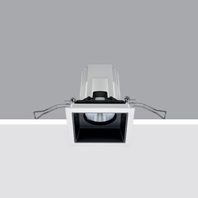 Incasso quadrato con cornice di battuta. Versione fissa Super Comfort: la posizione molto arretrata del LED minimizzal'abbagliamento (UGR < 15) e permette di ottenere un elevato comfort luminoso. Il corpo principale in alluminio pressofuso include una superficie radiante che garantisce un'ottimale dissipazione del calore. Riflettore ad alta definizione in materiale termoplasticometallizzatoottica wide flood (42°). Struttura con cornice esterna di battuta in alluminio pressofuso, rifinita con finitura unica bianca. Anello interno in materiale termoplastico disponibile in diverse finiture verniciate o metallizzate. Vetro di protezioneincluso.L'assemblaggio semplice e veloce non richiede utensili. LED 2700K ad elevato indice di resa cromatica. L'unità di alimentazione è disponibile con codifica separata. Dimensioni (mm): 83x83x89. Colore: Bianco (01). LED 10W 1050lm - valori della sorgente luminosa. 10W 703lm - valori di sistema i. Efficienza luminosa (valore di sistema): 70lm/W. Warm 2700K CRI 90. Ottica: WF - Wide Flood 42°. Orientabilità: Fisso.