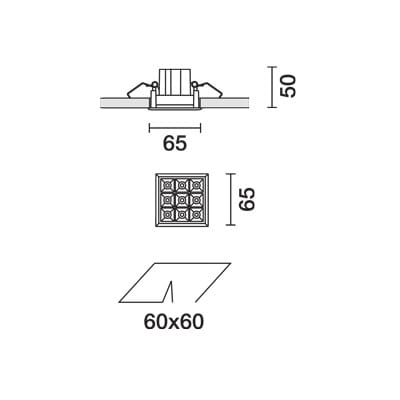 Frame 9 celle - Flood beam - LED. Apparecchio miniaturizzato quadrato ad incasso a 9 elementi ottici per sorgenti LED - ottiche fisse. Nonostante le dimensioni extracompatte del prodotto, la tecnologia brevettata del sistema ottico garantisce un flusso efficace ed un elevato comfort visivo. Corpo principale con superficie radiante in alluminio pressofuso, versione con cornice perimetrale di battuta. Riflettori Opti Beam ad altam definizione in termoplastico metallizzato, integrati in posizione arretrata nello schermo antiabbagliamento. Fornito con unità di alimentazione DALI collegata all’apparecchio. Montaggio incasso a parete e incasso a soffitto. Flusso totale emesso [Lm]: 996. Potenza totale [W]: 17.7. Efficienza luminosa [Lm/W]: 56.3. Tensione [V]: 230. Life Time: > 50,000h. Temperatura colore [K]: 3000.