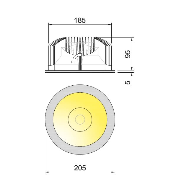 Hammer Maxi 205. Corpo: Corpo in pressofusione di alluminio. Ottica: Riflettore in alluminio metallizzato vetro di protezione. Colore: Bianco. Alimentatore incluso. Lampada: LED 38W 4400Lm 4000K 60°.