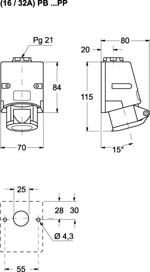 ILME - ILMPB 32122 PP PR.PARETE 42V 32A 2P - PB 32122 PP