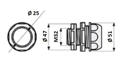 PREG 32 Raccordo tubo rigido o corrugato a scatola IP64-67 GRIGIO