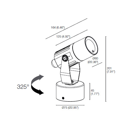 Flori 1.1 - Proiettore da interno ed esterno; orientabile 325°; su superficie (soffitto, parete, pavimento); corpo in alluminio, schermo in vetro temprato e serigrafato; finiture: grigio; 1 power LED High Intensity; 7W - 230Vac; alimentatore integrato; incluso cavo in neoprene di 1,5 m H05RN-F 3x1,0 Ø7 mm; flusso emesso: 340 lm (3000K, CRI 80), 296 lm (3000K, CRI 90); ottica: 36°; colore LED: bianco - 3000K; versioni CRI 80 e CRI 90; grado di protezione: IP66; grado di resistenza: IK06; dotato di sistemaIPS e PID; temperatura di esercizio: -20°C +45°C; temperatura schermo: max 40°C (Ta 25°C); sicurezza fotobiologica: gruppo rischio 1 secondo EN62471:2006; classe di isolamento I (230Vac); peso 1,10 kg; dimensioni Ø60x163,5x147 mm; accessori: nido d'ape,cannocchiale standard, cannocchiale asimmetrico, alette frangiluce nere, picchetti per installazione a terra, picchetto per installazione a parete. LED bianco 7W 3000K 36°.