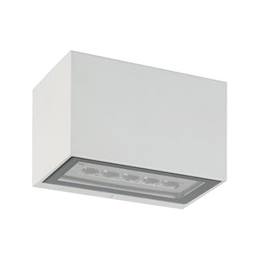 Geko 6.1 - Applique da esterno; biemissione; su superficie (parete); corpo in alluminio pressofuso lega EN AB 47100, schermo in vetro temprato; finiture: bianco; 10 (5+5) power LED; 20W (10W+10W) - 230Vac; alimentatore integrato; muffola per connessione con cavo di 0,30 m; flusso totale: 521 lm (3000K) per emissione; ottica 10°x45°; colore LED: bianco - 3000K; grado di protezione: IP65; grado di resistenza: IK07; temperatura di esercizio: -10°C +45°C; temperatura schermo: max 40°C (Ta 25°C); Glow Wire Test: 960°; sicurezza fotobiologica: gruppo rischio 1 secondo EN62471:2006; classe di isolamento I; peso 2,00 kg; dimensioni 170x100x100 mm; accessori: distanziale WD0300E. LED bianco 20W 3000K 521lm 10°x45°.