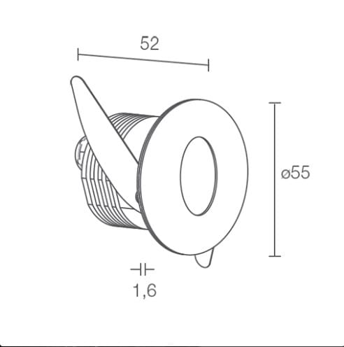 Step Outside 5.2 - Segnapasso da esterno; a incasso (parete); corpo in alluminio, ghiera in acciaio inox; finiture: bianco; 1 power LED; max 2W - max 500mA; incluso cavo in neoprene di 1,5 m H05RN-F 2x0,35/0,75 Ø6,3 mm; collegamento in serie; ottica diffusa; colore LED: bianco - 2700K; grado di protezione: IP65; dotato di sistema IPS; temperatura di esercizio: -20°C+45°C; sicurezza fotobiologica: gruppo rischio 1 secondo EN62471:2006; classe di isolamento III; peso 0,24 kg; dimensioni Ø55x52 mm; foro d'incasso: Ø45 mm; volume tecnico per dissipazione: Ø70x90 mm; dimmerazione disponibile mediante alimentatore dimmerabile; accessori: cassaforma WC1500, cassaforma WC1501. LED bianco 2W 2700K 500mA.