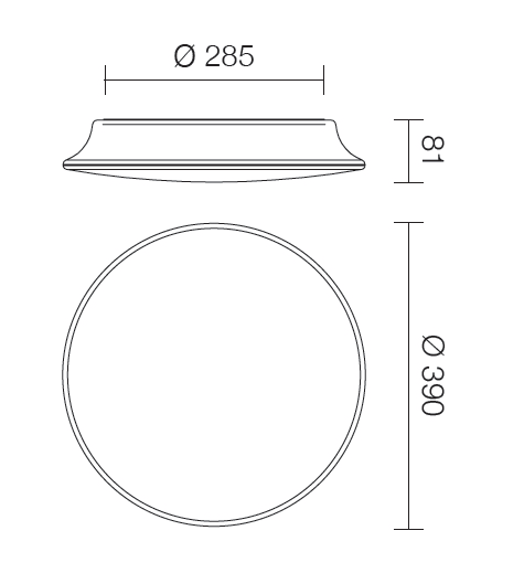 Plafone a doppia emissione per applicazione indoor e outdoor. La sorgente luminosa LED, di colore bianco caldo, con distribuzione luminosa General Lighting, è composta da 72 LED topled, con una CCT 3000 K ed un CRI 85; il flusso luminoso della sorgente è di 1396 lm, con un'efficienza nominale di 116.3 lm/W.