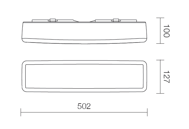 Plafone a doppia emissione per applicazione outdoor. La sorgente luminosa LED, di colore bianco caldo, con distribuzione luminosa General Lighting, è composta da 78 LED topled, con una CCT 3000 K ed un CRI 85; il flusso luminoso della sorgente è di 1586 lm, con un'efficienza nominale di 122.0 lm/W.