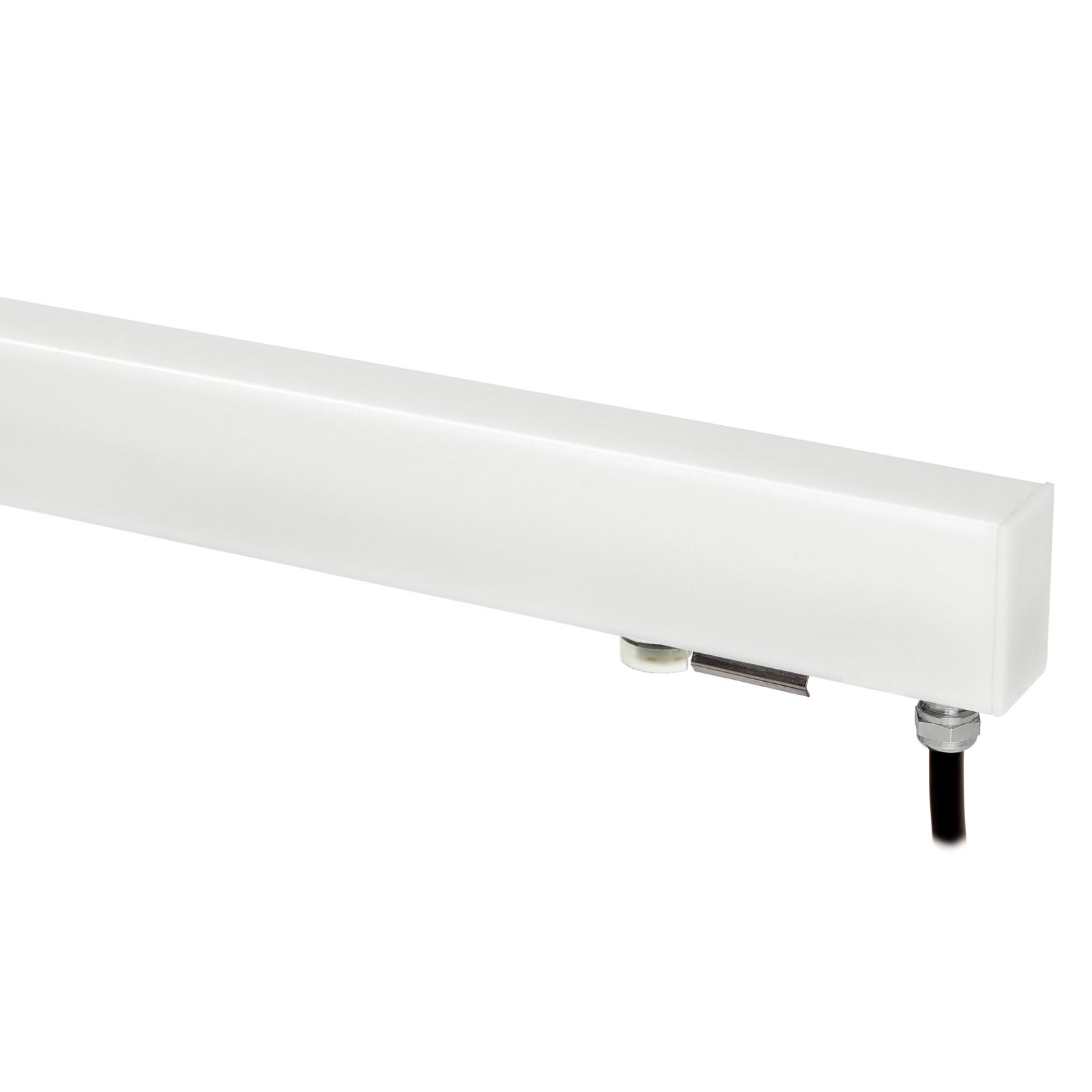 Elementi lineari a singola emissione per applicazione outdoor. La sorgente luminosa LED, di colore bianco caldo, con distribuzione luminosa General Lighting, è composta da 264 LED topled, con una CCT 3000 K ed un CRI 80; il flusso luminoso della sorgenteè di 2079 lm, con un'efficienza nominale di 109.4 lm/W. Il corpo dell'apparecchio, realizzato in policarbonato uv resistente, presenta una finitura di colore opalino; il diffusore è prodotto in policarbonato uv resistente. Il grado di protezione è IP67; il peso complessivo è di 1.45 kg. La potenza assorbita dall'apparecchio è di 19 W.
