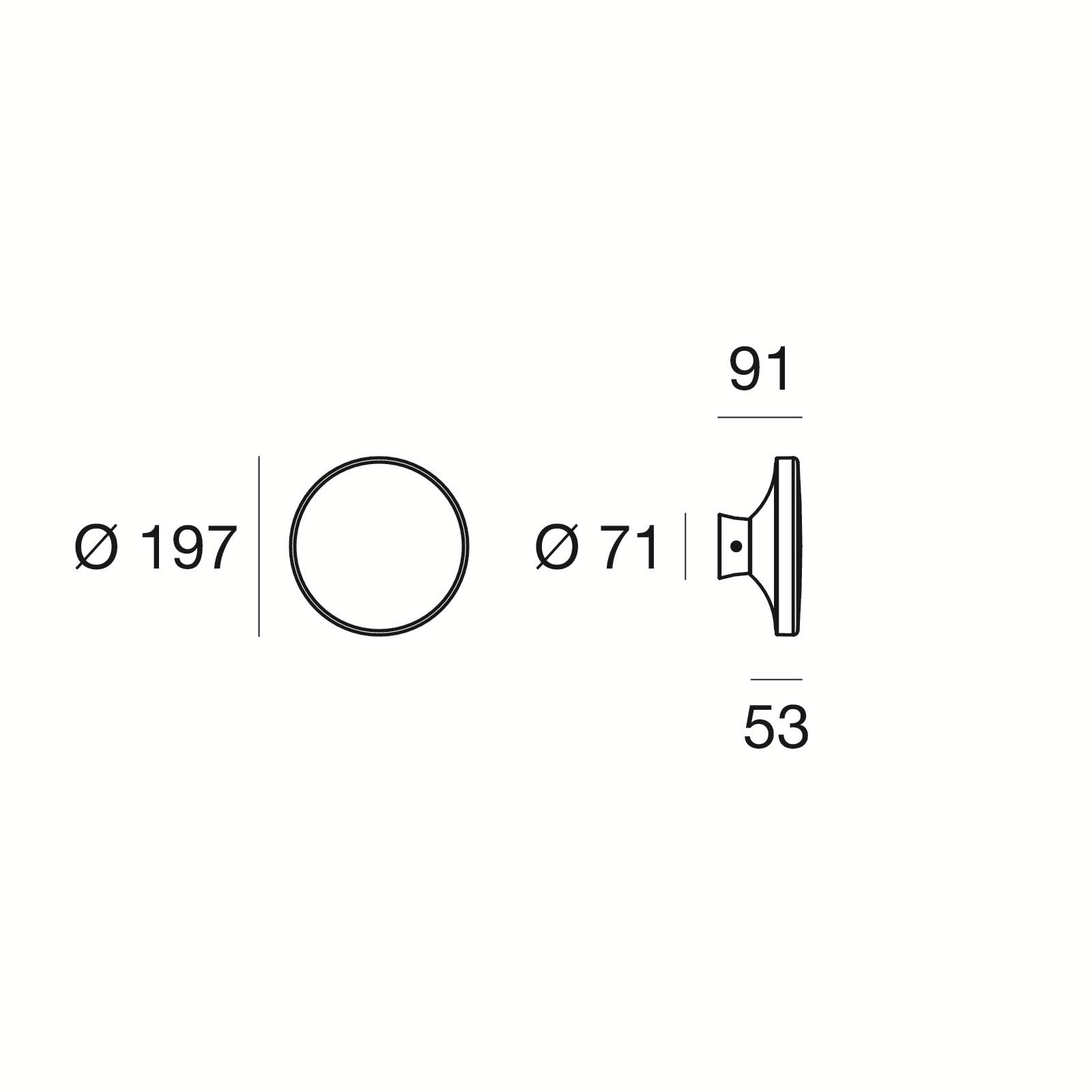 Lampada a parete a singola emissione per applicazione outdoor. La sorgente luminosa LED, di colore bianco caldo, con distribuzione luminosa General Lighting, è composta da 18 LED topled, con una CCT 3000 K ed un CRI 80; il flusso luminoso della sorgente è di 1350 lm, con un'efficienza nominale di 112.5 lm/W.